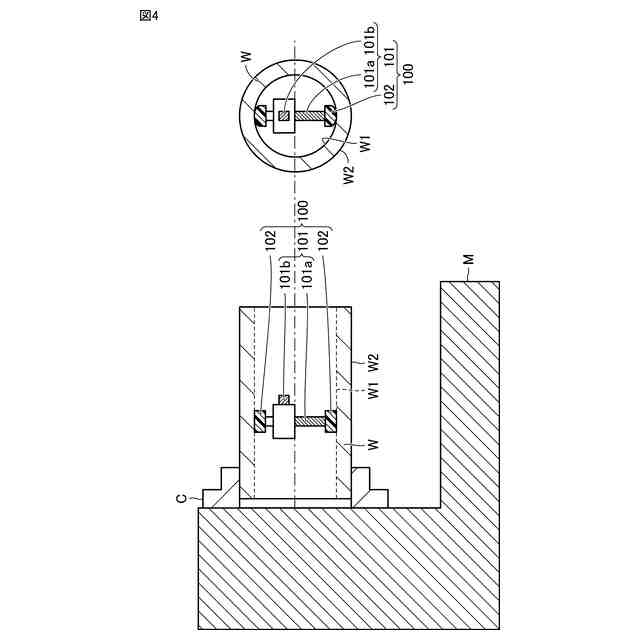 実施の形態1において治具がパイプの壁面を押し当てる力を調整する工程の態様が示される概略図である。