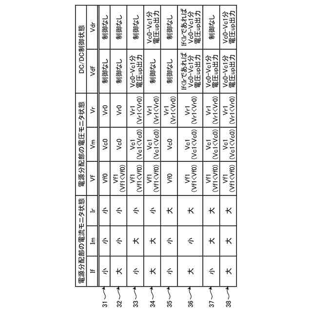図6は、3つの電源分配器による電圧情報及び電流情報と、2つのDC/DCコンバータの出力電圧の制御状態を示す図である。