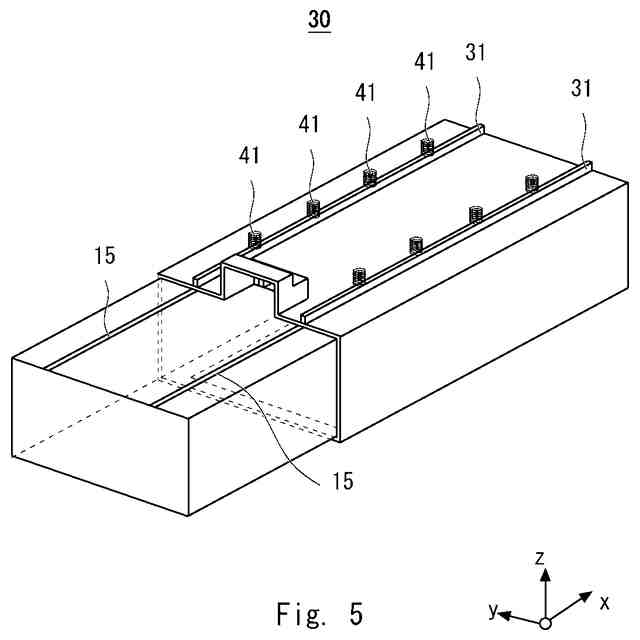 実施の形態4にかかる蓄電装置構造の抑え構造の一例を示す斜視図である。