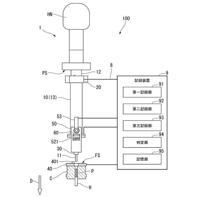 前記突出部と前記第二導電部材との間で導通があったか否かを記録する第二記録部と、