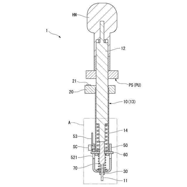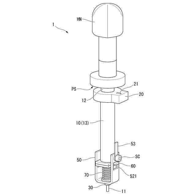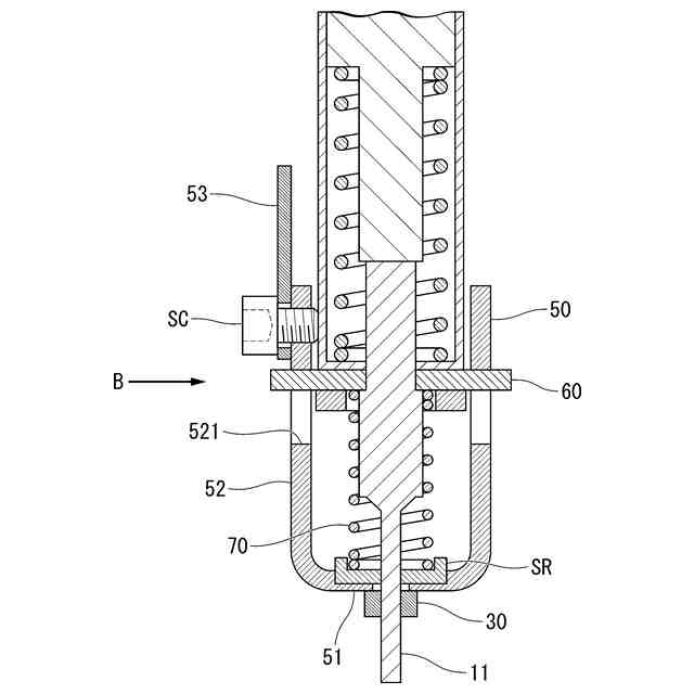 前記ストッパと、前記突出部と、の間に配置され、前記突出部から押圧を受ける圧縮コイルばねと、