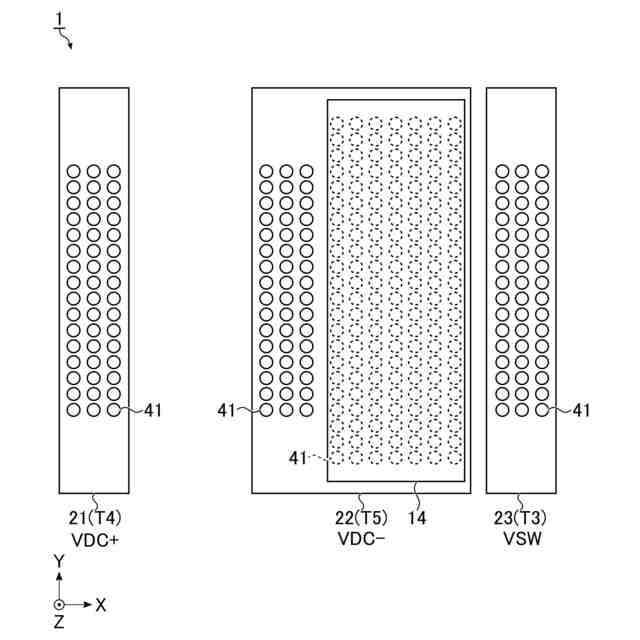 前記第3電極に接続された第1配線層、前記第1電極に接続された第2配線層、及び前記第1配線層と前記第2配線層との間に配置された第1誘電体層を含む第1コンデンサと、