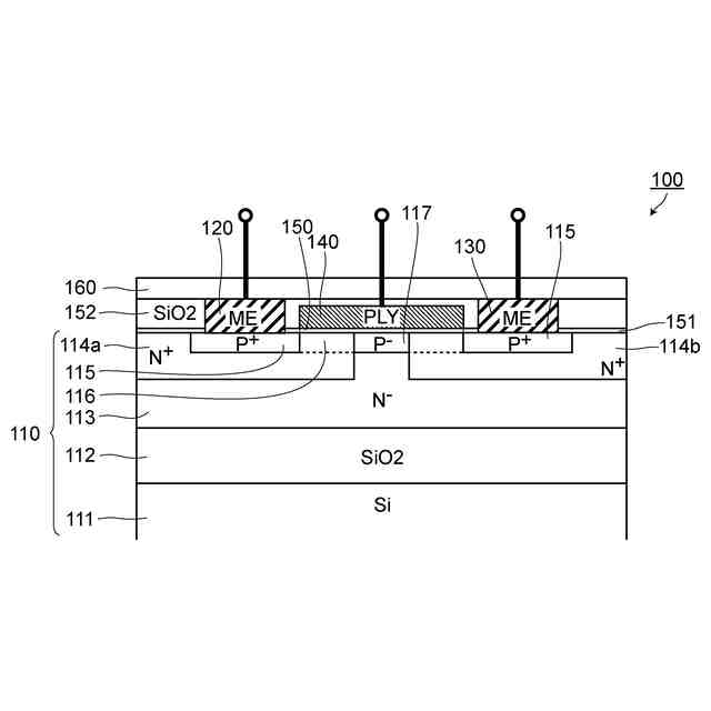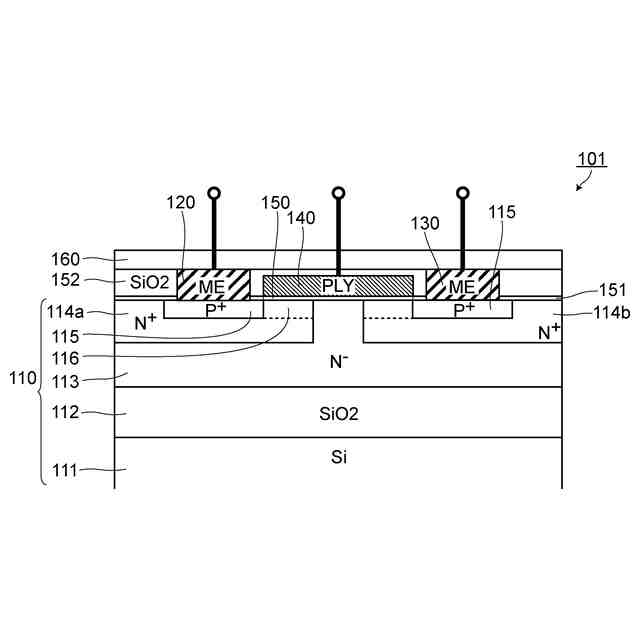 SOI基板810は、活性層813の表面に離隔して形成され、ソース電極820又はドレイン電極830と接続されているP型半導体領域815をさらに有する。