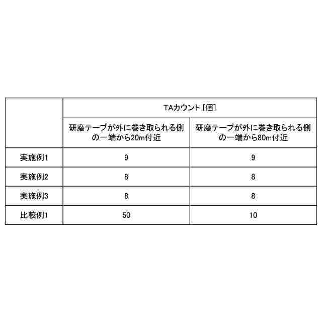 研磨テープ100に異物又は遊離した砥粒などが混入すると、バーニッシュ工程において多層膜の表面に円周傷が発生し、汚れが付着しやすくなる。そのため、研磨テープ100は、その製造過程において異物又は遊離した砥粒などが混入しないように品質管理されて製造される。しかしながら、磁気記録媒体の製造において、依然として、バーニッシュ工程に起因すると思われる傷又は汚れが発生する場合がある、という問題があった。多層膜の表面に傷及び汚れなどが発生した磁気記録媒体は、不良品として処理され、磁気記録媒体の生産性を低下させることになる。