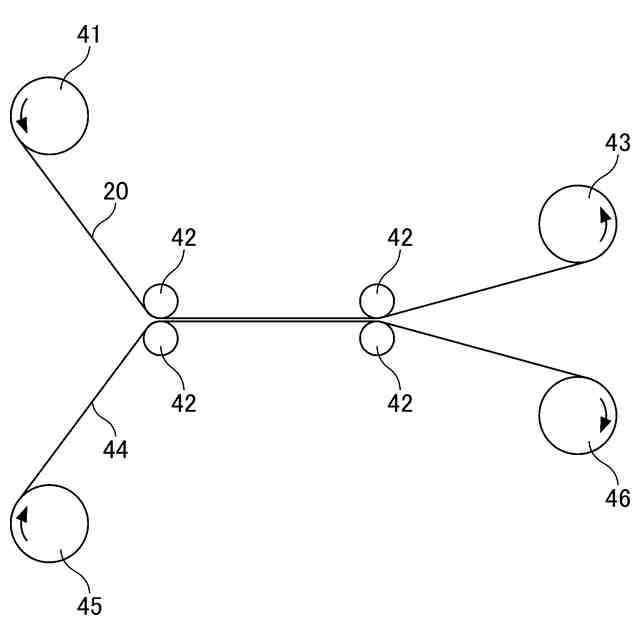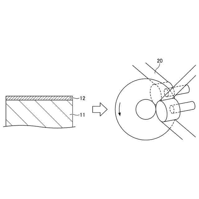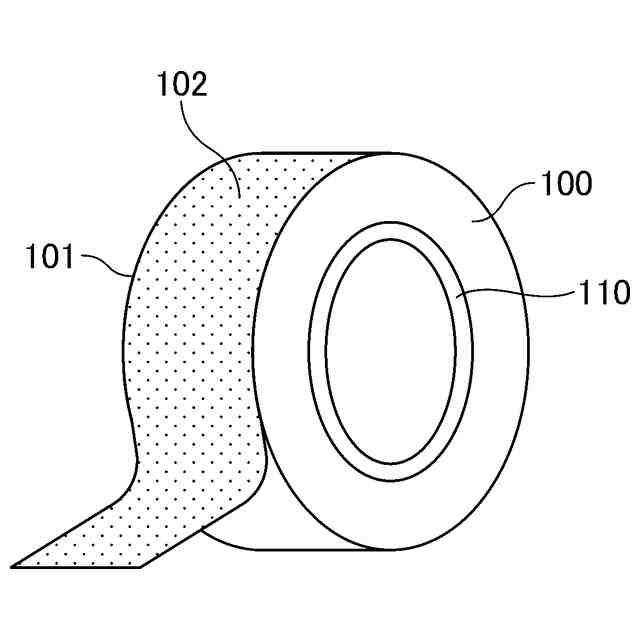 バーニッシュ工程では、図1に示すように、樹脂フィルム101上にアルミナなどの砥粒102を樹脂で固着させた研磨テープ100が用いられる。研磨テープ100は、幅数cm、長さ100m程度の長尺であり、芯材110にロール状に巻き取った状態で供給される。