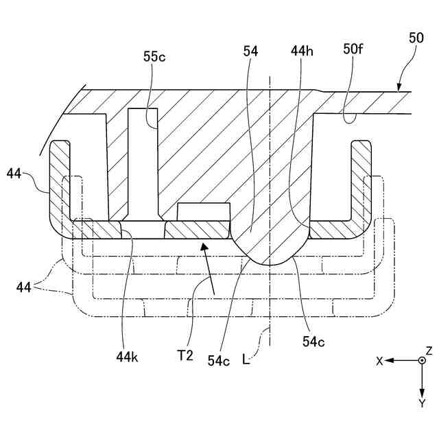 前記第2傾斜面は、前記第2側に向かうに従い前側に向かう方向に傾斜し、