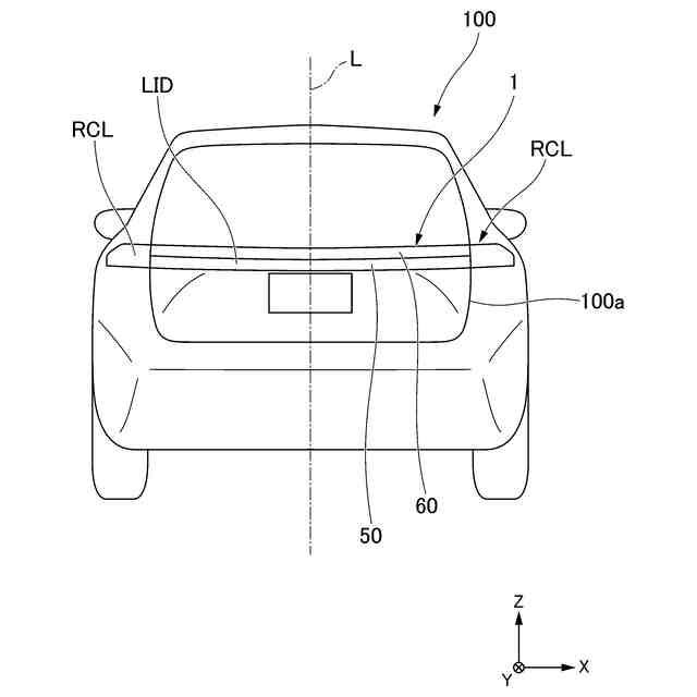 図2は、一実施形態のリッドランプとリアコンビネーションランプを後側から見た図である。