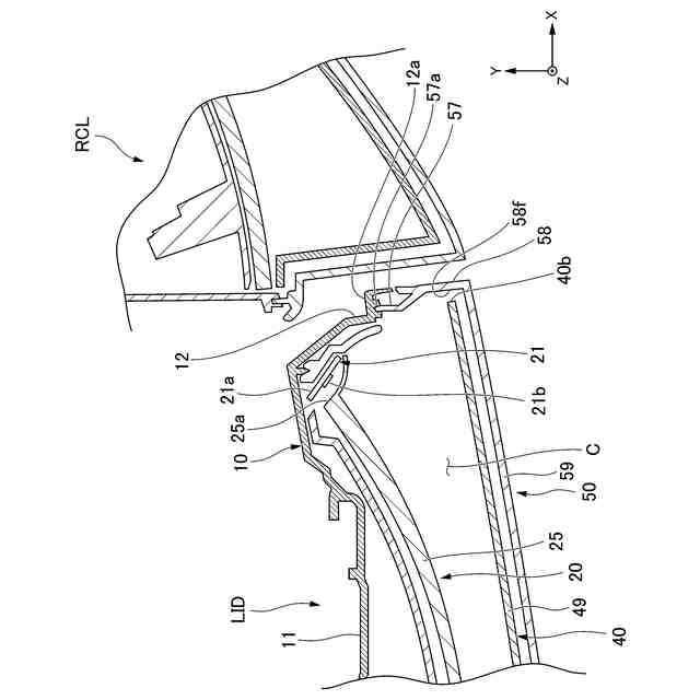 このような車両用灯具では、リッドランプとリアコンビネーションランプとの間に生じる隙間によって、リッドランプ側の発光領域と、リアコンビネーションランプ側の発光領域との間に暗部が生じてしまう。そこで、リッドランプのインナーレンズの左右方向の端部をアウターレンズの内側面に近づけて配置することで、リッドランプ側の発光領域と、リアコンビネーションランプ側の発光領域とを一連の発光領域として、発光の見栄えを改善することが行われている。しかしながら、アウターレンズの側壁部が左右方向に奥まった形状をする場合に、アウターレンズの収容空間にインナーレンズを配置しにくく、アウターレンズの側壁部とインナーレンズの端部との距離を近づけることが難しくなる。