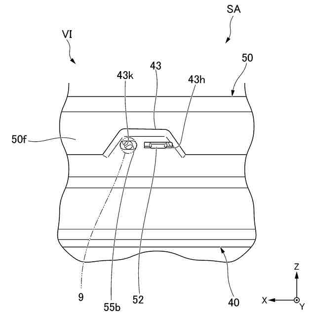 図9は、図7のIX-IX線に沿う位置決め凸部、および第4突出片の断面図である。