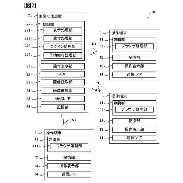前記操作画面各々におけるユーザー操作に応じて、当該操作画面が表示されている前記操作端末のユーザーに対応する予約ジョブを個別に受け付け可能な受付処理部と、