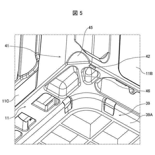 前記底壁構成部の四隅の第1コーナー部の下面から下方に突出する複数の底突部と、を有し、