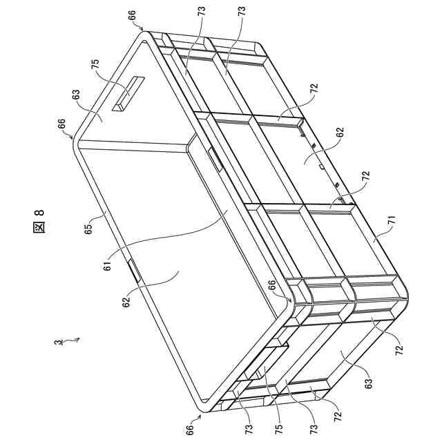 折畳状態の第1容器を段積みした状態を示す斜視図である。