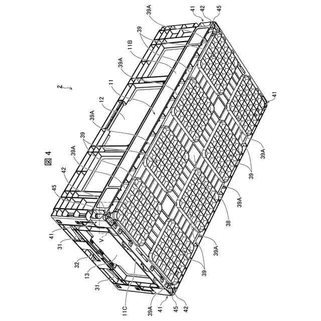 折り畳み可能な容器が種々提案されている。特許文献1に記載された折畳み容器では、底壁構成部の下面側には、支持リブが設けられている。折畳み容器同士を段積みした場合、上側の折畳み容器の支持リブが、下側の折畳み容器の側壁部の内周側に挿入され、上側の折畳み容器の水平方向の移動が規制される。また、底壁構成部の下面側には、下面の周縁部から下方に突出する複数の底部補強部が設けられている。側壁部の上端には、組立時収容凹部が設けられ、組立状態にある折畳み容器同士を段積みした場合に、上側の折畳み容器の底部補強部が、下側の折畳み容器の側壁部の上端に設けられた組立時収容凹部に収容されるように構成されている。