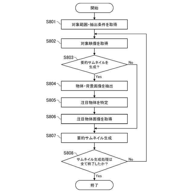 要約画像生成装置において、映像から所定条件を満たす注目物体を抽出すると共に前記映像から少なくとも前記注目物体を除いた背景画像を抽出する抽出手段と、前記注目物体に対応して生成された物体画像と前記背景画像に基づき要約画像を生成する要約画像生成手段と、を備えることを特徴とする。要約画像は例えばサムネイル画像などとして表示可能にされる。