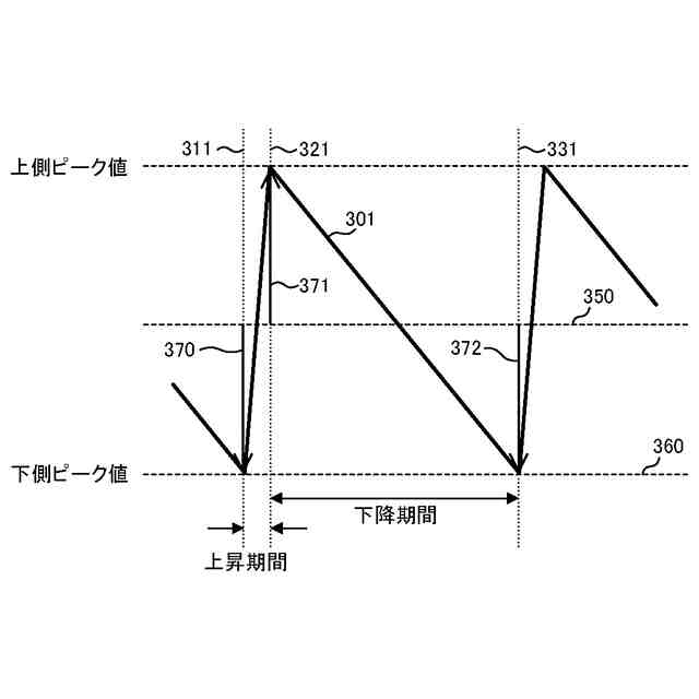 バイポーラ駆動の場合の上側ピーク値と下側ピーク値を説明するための図である。