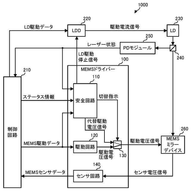 しかし、特許文献1に記載されているような従来の装置では、MEMSミラーを駆動するMEMSドライバーが制御回路からのMEMS駆動データを確実に受信できることを前提として設計されている。このため、MEMSドライバーが制御回路からのMEMS駆動データを受信できない等の異常事象が発生した場合に問題が生じる可能性があった。