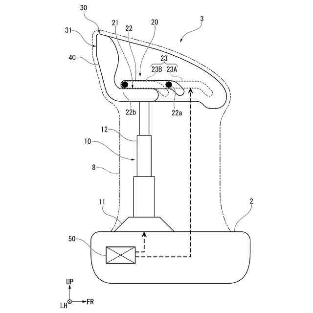 本態様によれば、電子制御によって、伸縮脚の高さに応じて座の奥行きの大きさを自動で調整できる。