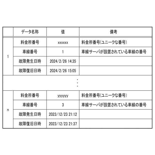 また、ETC試験制御システムにおいて、障害対応を効率化するために、各ログ収集装置から取得した車線サーバのログデータを解析し、数多くある車線サーバに設置されている各機器の故障予測を行う方法がある。例えば、特許文献1では、ログデータの特徴的な発生パターンから障害の予測、故障を予兆する技術を開示している。
