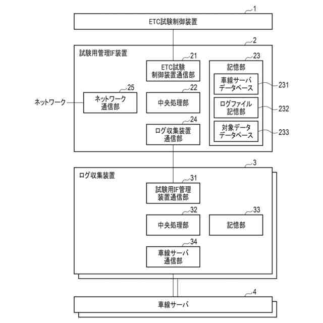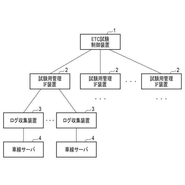 図1に示すように、実施形態に係るETC試験制御システムは、ETC試験制御装置1と、試験用管理インタフェース装置2(図1では、試験用管理IF装置と記載)と、ログ収集装置3と、車線サーバ4と、を備える。