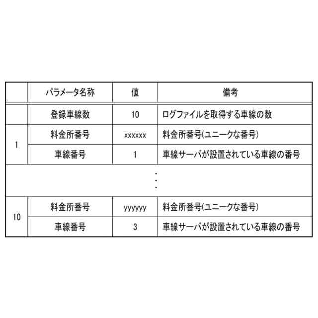 図3は、車線サーバデータベースに記憶されたログ取得情報の一例を示した図である。