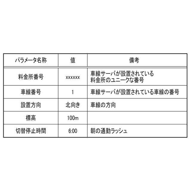 前記記憶部は、前記車線サーバがどのように設置されているかを示すパラメータを含む車線サーバ情報をさらに記憶し、
