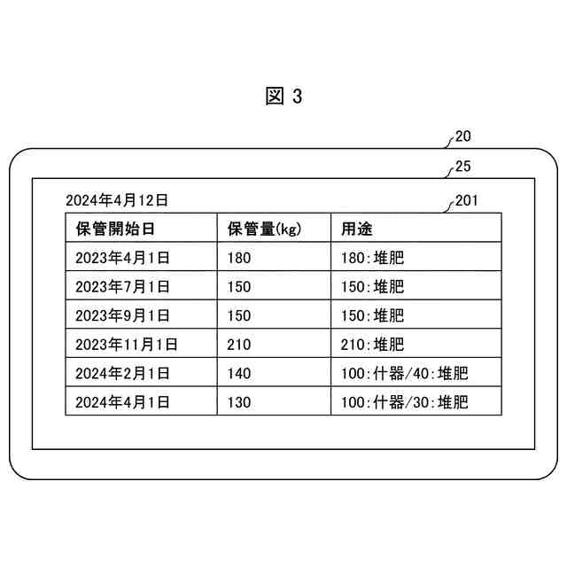 保管場所で保管されているコーヒー滓について、前記コーヒー滓の保管期間および保管量を取得する取得部と、