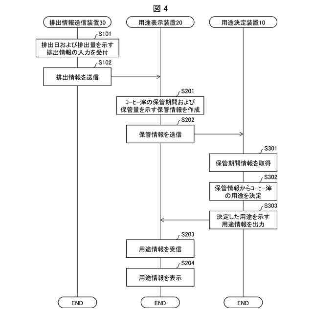 【解決手段】用途決定装置(10)は、保管場所で保管されているコーヒー滓について、コーヒー滓の保管期間および保管量を取得する取得部(11)と、保管期間および保管量に応じて、コーヒー滓の用途を決定する決定部(12)と、決定部(12)の決定結果である用途を示す用途情報を出力する出力部(13)とを備える。