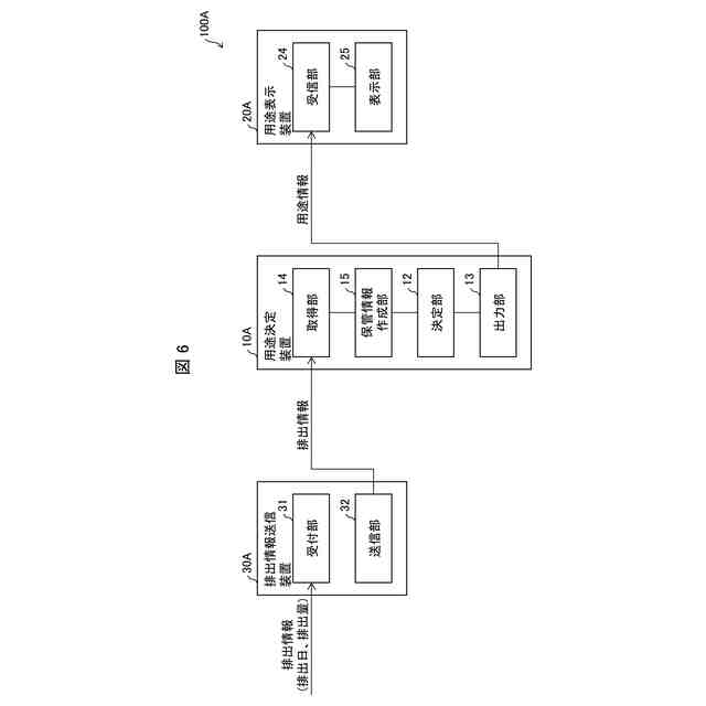 前記用途表示装置から送信した保管情報は、前記用途決定装置で取得され、