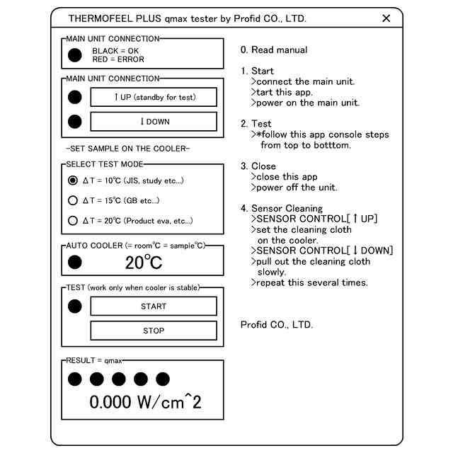 を測定するための装置自体は既存である。しかし、これを使用して接触冷感性を精確に測定することは、実のところ容易でない。測定開始時の熱源板の温度を30℃、ΔTを10℃とすると、測定開始時の対象物の試料の温度は20℃でなければならない。が、試料の温度は、測定作業を行う室内の温度及び空調装置の影響を受けやすく、試料が20℃、熱源板と試料との温度差ΔTが10℃であることが必ずしも保証されていない。ΔTが10℃からずれていると、q