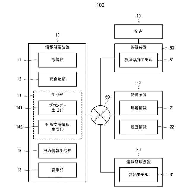 【解決手段】 情報処理装置は、ネットワークにおける通信を監視する監視装置によって検知された異常な事象を示す検知情報について、監視装置が監視する通信の環境を示す環境情報を取得する取得部と、検知情報に含まれる事象が生じる要因を問合せる問合せ情報を言語モデルに送信し、問合せ情報に対する回答情報を前記言語モデルから取得する問合せ部と、検知情報と、環境情報と、回答情報とを表示する表示部と、を有する。