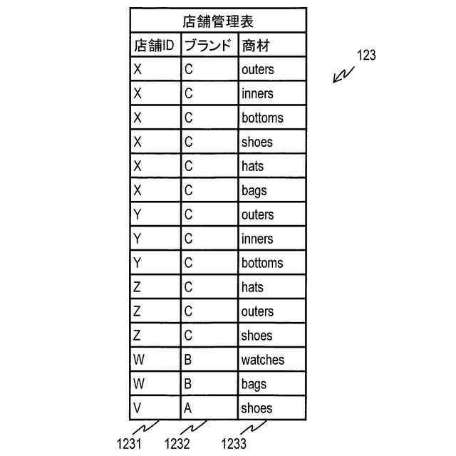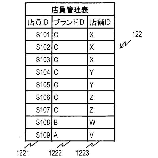 実施例1における店舗管理表のデータ構成例を示す図である。