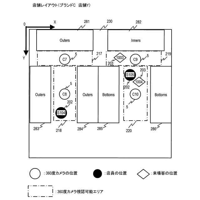 実施例1における店舗システムが配置されている店舗Yのレイアウトの一例を示す説明図である。