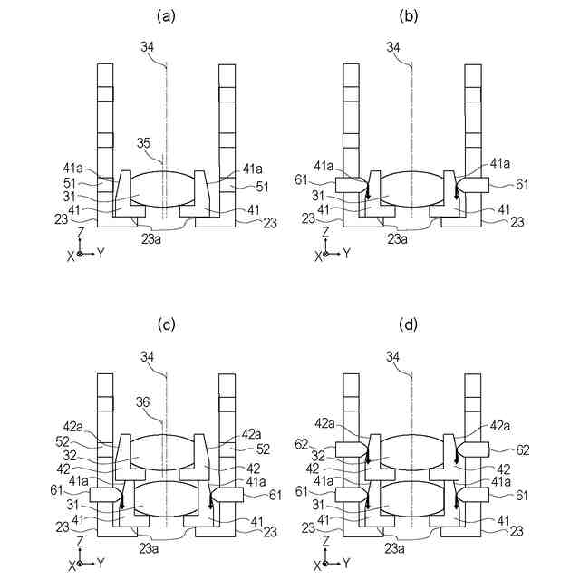 特許文献1のように工具によりレンズ等の光学素子を保持する保持部に力を加えると、保持部の浮き上がりや傾きが生じることがある。このように保持部の意図せぬ位置変化が生じると、光学素子の位置を調整することができない。
