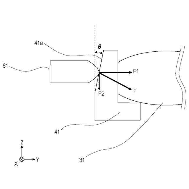 第1調整部により第1保持部に力を加えるときの模式図である。