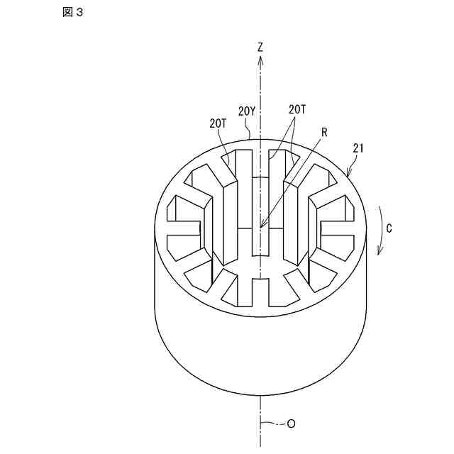 前記ティースは、前記ヨークから前記中心方向に延びる凸多面体である、