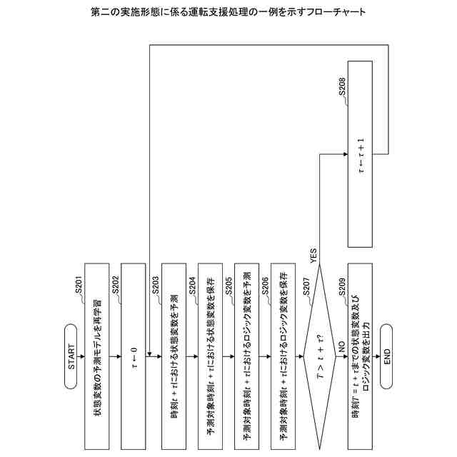 【解決手段】本開示の一態様による運転支援装置は、予め作成された機械学習モデルを用いて、制御対象の状態を表す状態変数を予測する第1の予測部と、前記制御対象に対する制御ロジックと、前記第1の予測部により予測された状態変数とを用いて、前記制御対象を制御するための制御値を表すロジック変数を予測する第2の予測部と、前記第1の予測部により予測された状態変数と、前記第2の予測部により予測されたロジック変数とを予め決められた所定の出力先に出力する出力部と、を有する。