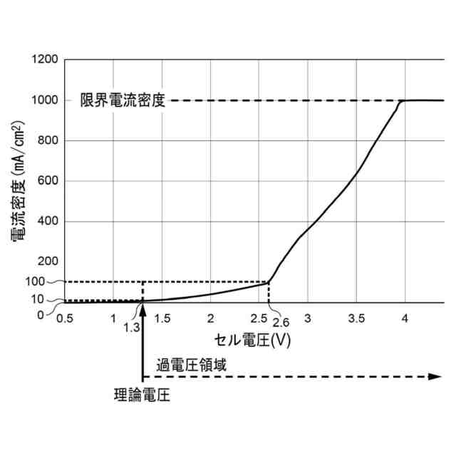 このうちカソード電極における電解反応式は以下の式(1)および(2)で示される。