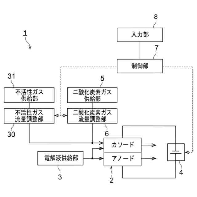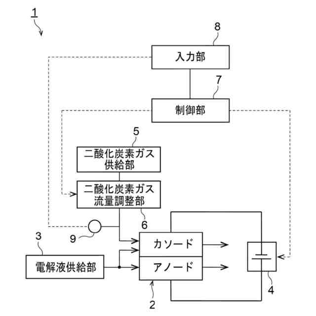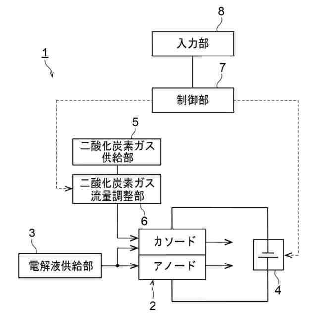 前記カソード電極への前記二酸化炭素ガスの供給流量を調整する二酸化炭素ガス流量調整部と、