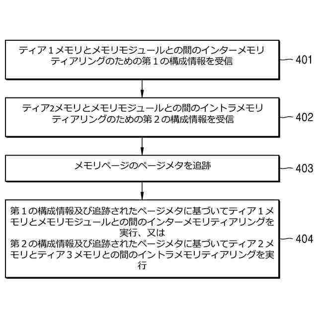 上記目的を達成するためになされた本発明の一態様によるメモリモジュールによるインターメモリ/イントラメモリティアリングを実行するためのための方法は、ホスト中央処理装置(CPU)から、ティア1メモリと前記メモリモジュールとの間のインターメモリティアリングのための第1の構成情報を受信するステップと、前記メモリモジュールに含まれるCPUから、ティア2メモリとティア3メモリとの間のイントラメモリティアリングのための第2の構成情報を受信するステップと、メモリページのページメタを追跡するステップと、前記メモリページに対して、前記第1の構成情報及び追跡されたページメタに基づいて前記ティア1メモリと前記メモリモジュールとの間のインターメモリティアリング、又は前記第2の構成情報及び前記追跡されたページメタに基づいて前記ティア2メモリと前記ティア3メモリとの間のイントラメモリティアリングのいずれかを実行するステップと、を有し、前記ティア2メモリ及び前記ティア3メモリは、前記メモリモジュールに含まれる。