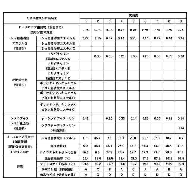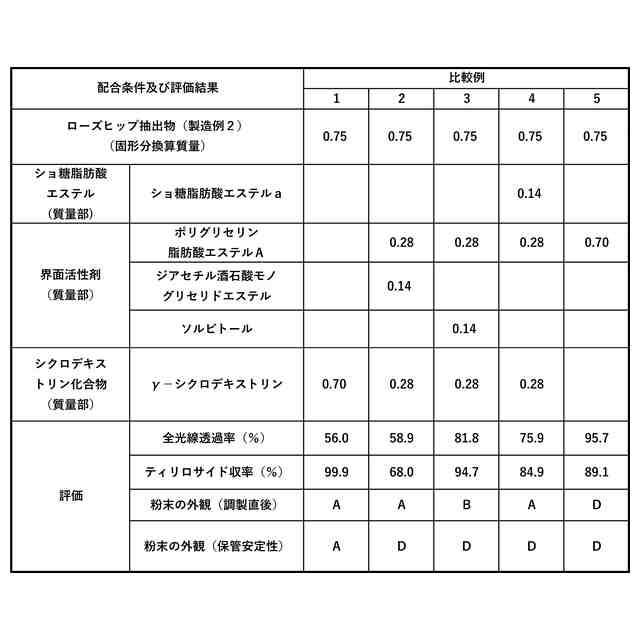 本発明者らは、上記目的を達成すべく鋭意研究を重ねた結果、ローズヒップ由来のティリロサイドを含有するローズヒップ抽出物と、特定のショ糖脂肪酸エステルとを用いることにより上記目的を達成できることを見出し、本発明を完成するに至った。
