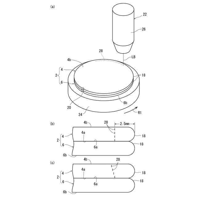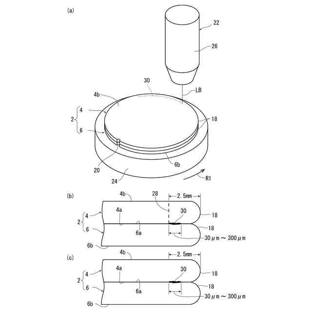 該第一の改質層形成工程および該第二の改質層形成工程の後、一方のウエーハから面取り部を除去する面取り部除去工程を含むのが好適である。該第一の改質層形成工程および該第二の改質層形成工程の後、一方のウエーハの上面を研削して薄化する際、一方のウエーハから面取り部を除去する研削工程を含んでいてもよい。