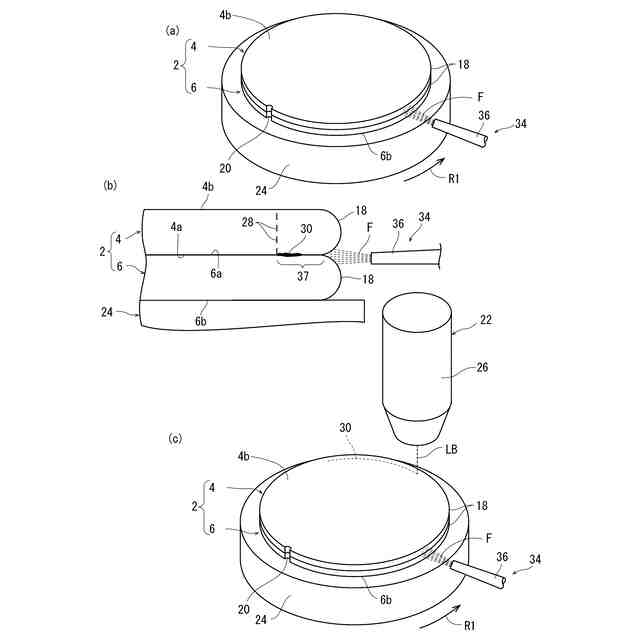 好ましくは、一方のウエーハと他方のウエーハとが接合した接合面に接合力を弱める流体を接合ウエーハの外周から供給して該接合力低下改質層に至る領域まで浸入させる流体供給工程を含む。該第一の改質層形成工程および該第二の改質層形成工程において使用するレーザー光線は同じでよい。該流体供給工程は、該第二の改質層形成工程の前、該第二の改質層形成工程の後、または該第二の改質層形成工程と同時に実施するのが望ましい。