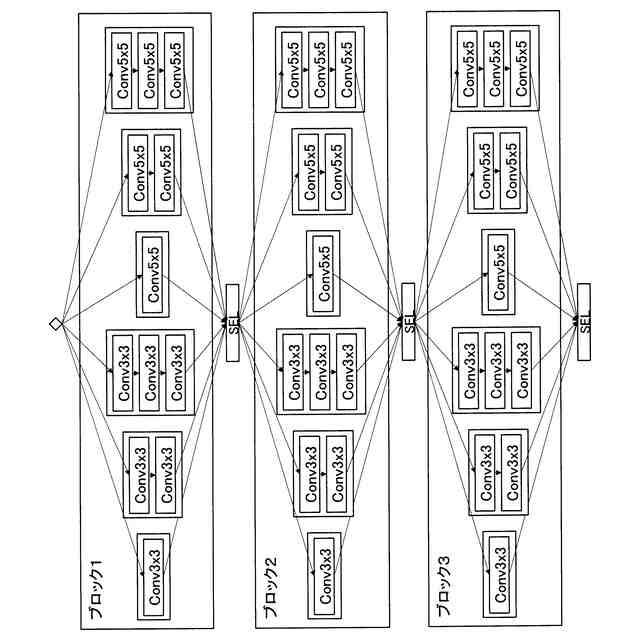 非特許文献2には、複数の候補構造を含んだスーパーネットの初期重みを適切に設定することで効率的にニューラルネットワーク構造の探索を行う方法が開示されている。