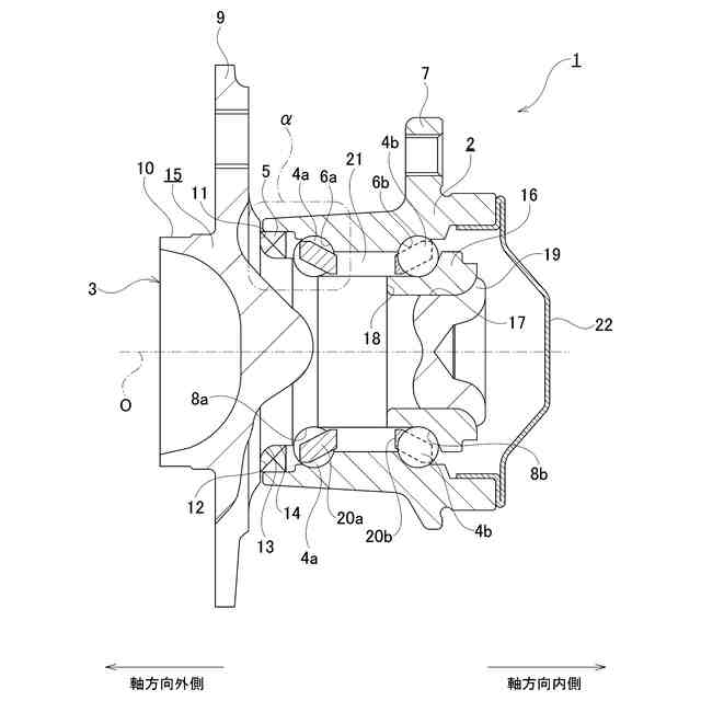 図8は、特開2016-223453号公報に記載された、従来構造のハブユニット軸受100を示している。