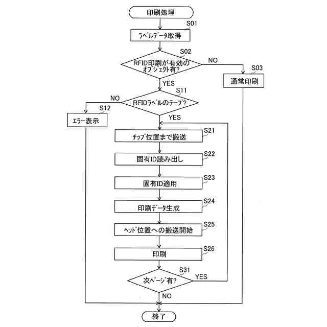 実施の形態にかかるRFID印刷の手順を示すフローチャートである。