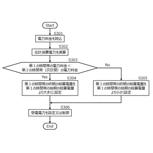 前記第1の時間帯の電力料金が前記第2の時間帯の電力料金よりも低く、前記第1の時間帯の終期まで最大限受電したときの前記第1の時間帯の終期における総蓄電量の予想値が前記上限目標値以下である場合、前記第1の時間帯の終期の総蓄電量の目標値を前記予想値に設定し、