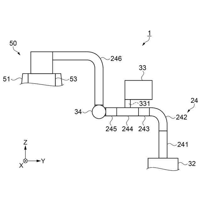 分離部と堆積部とを接続する配管の構成を示す模式図。