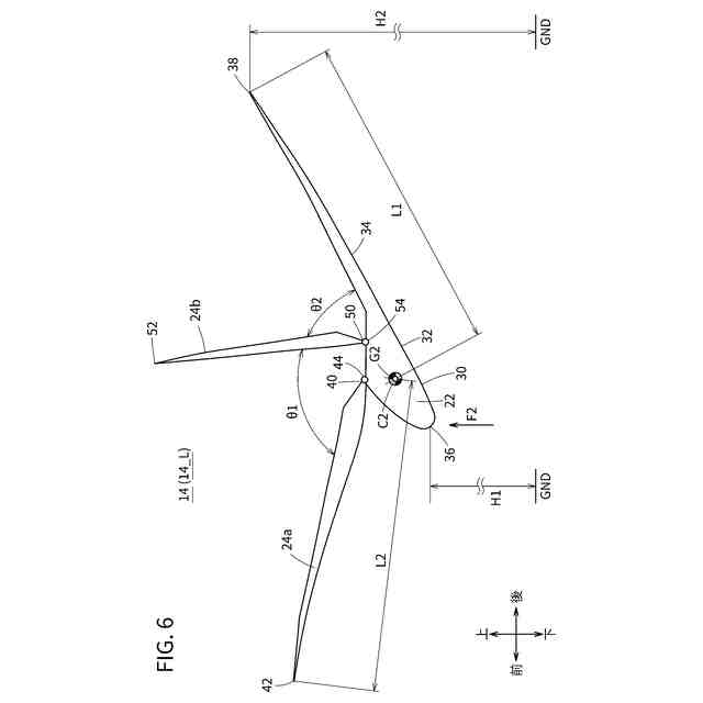 図6は、飛行体が降下している場合の翼部の状態を示す図である。
