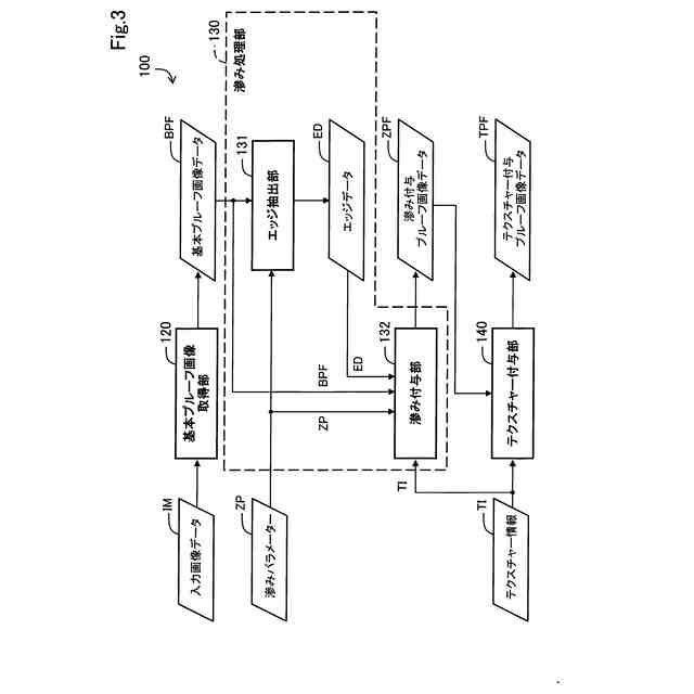 前記テクスチャー依存モードに関する前記滲みパラメーターは、前記テクスチャー値と閾値との大小関係が第1大小関係と第2大小関係のいずれであるかに応じて、前記滲みを付与するか否かを示す滲み方向パラメーターを含み、