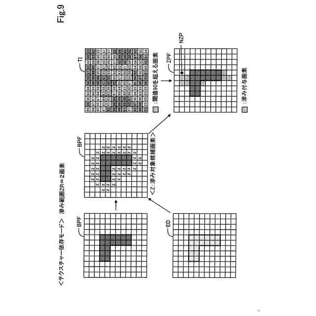 テクスチャー依存モードによる滲み付与処理の他の例を示す説明図。